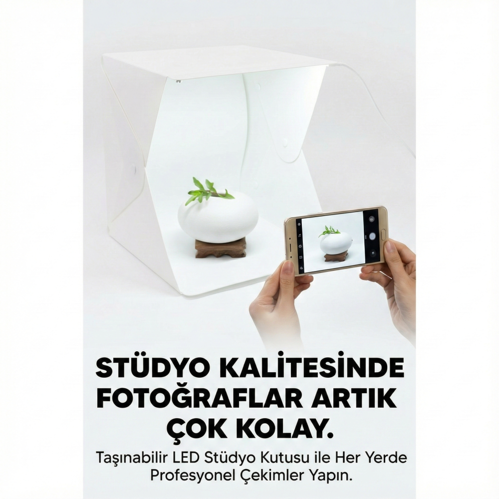 20 x 20 CM Profesyonel Stüdyo Led Işıklı Çift Sıra Ürün Fotoğraf Çekim Çadırı