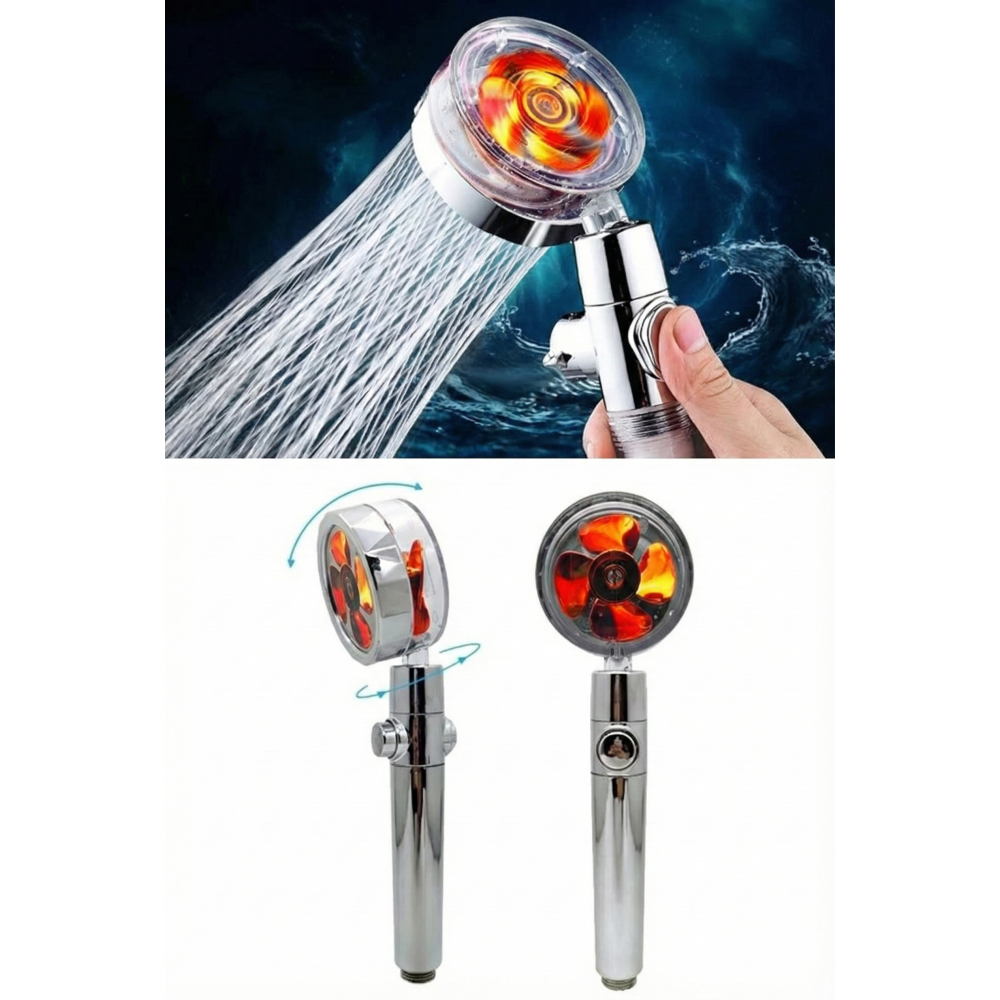 Duş Başlığı Turbo Pervaneli Serinletici Tasarım Start Stop Tuşu Duş Başlığı 360 Derece Döner