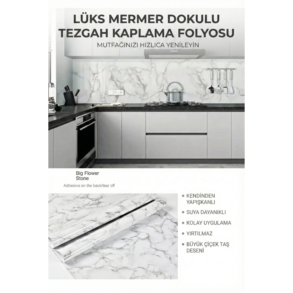 1 Ad. Mermer Desenli Yapışkanlı Tezgah Folyosu 3 mt.