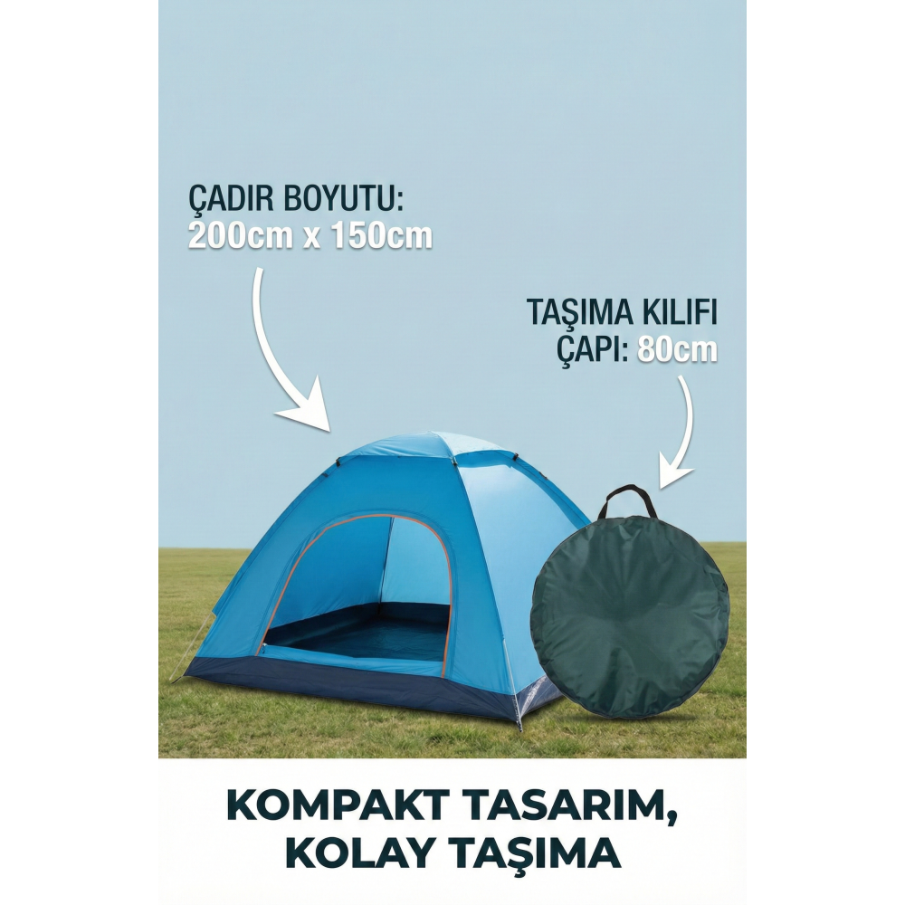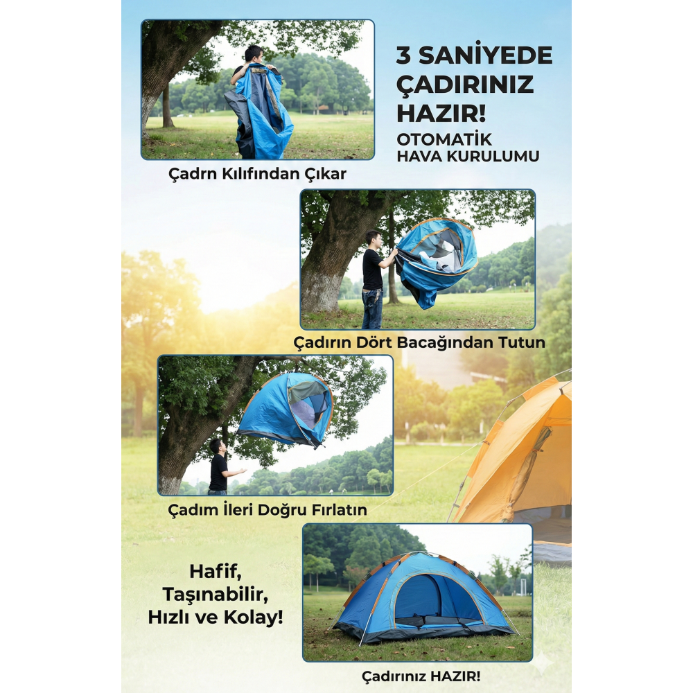 • Katlanabilir otomatik su geçirmez kamp yürüyüş seyehat çadırı DAYANIKLI ANTİ UV YÜKSEK KALİTE KUMAŞ MALZEMEDEN ÜRETİLMİŞTİR