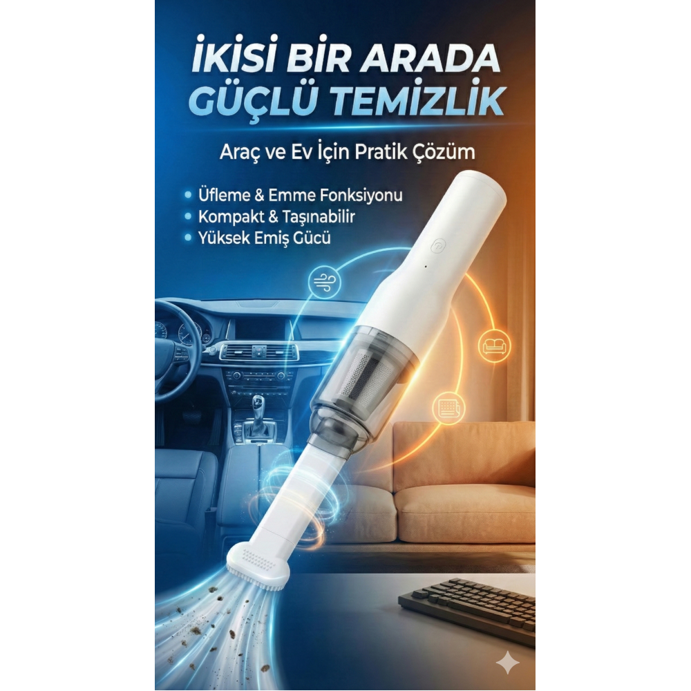 Şarjlı Mini Araç İçi Süpürge
